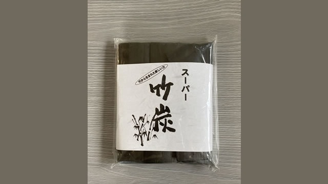 「スーパー竹炭」は800°C~1200°Cまで温度を上げて炭化した白炭形式の竹炭です。 ●木炭の3倍の威力があります。